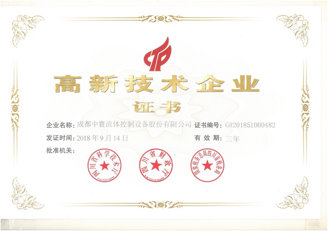 近日,我司顺利通过四川省高新技术企业认定复审工作,再一次荣获由四川省科学技术厅、四川省财政局、国家税务总局四川省税务局联合颁发的《高新技术企业证书》。