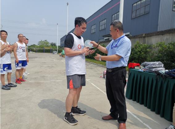 颁奖仪式:由公司董事李大全先生为大家颁发奖项。恭喜慢联队获得第一届员工篮球冠军杯冠军!小组队员各获得护膝一对、运动双肩包一个!恭喜DF-17队获得亚军!小组成员各获得护臂一对、洗漱包一个!张迪作为DF-17队队长,凭借在循环赛比赛中场均20+分以及总决赛全场个人最高得分的高水准表现,获得年度MVP奖杯!