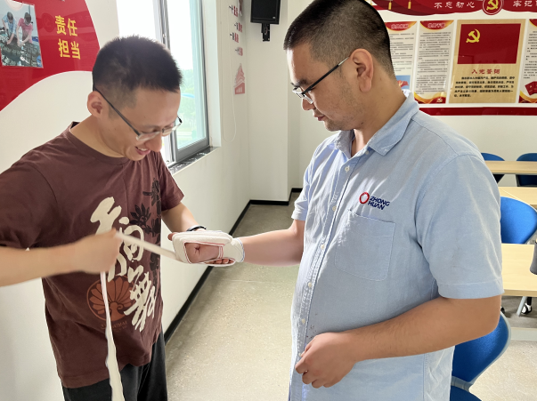 最后对学员们进行理论考核和完成心肺复苏和绷带、三角巾包扎方法的实操考试,参加本次培训的员工顺利通过考试,取得了红十字救护员证书。
