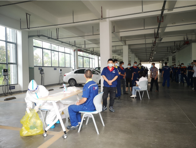 公司认真落实政府有关疫情防控要求,每日组织进入闭环生产的全体员工进行核酸检测,确保工作环境安全,保障防疫、生产“两不误”。