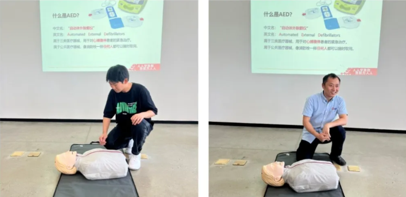 本次培训班采用线上+线下的模式进行,由双流红十字会安排的两名专业老师进行授课。理论课知识丰富专业,涵盖了红十字的文化、救护概论、心肺复苏、除颤仪的使用、气道异物梗阻等内容。其中着重向员工们强调了应急救护“黄金四分钟"的重要性。